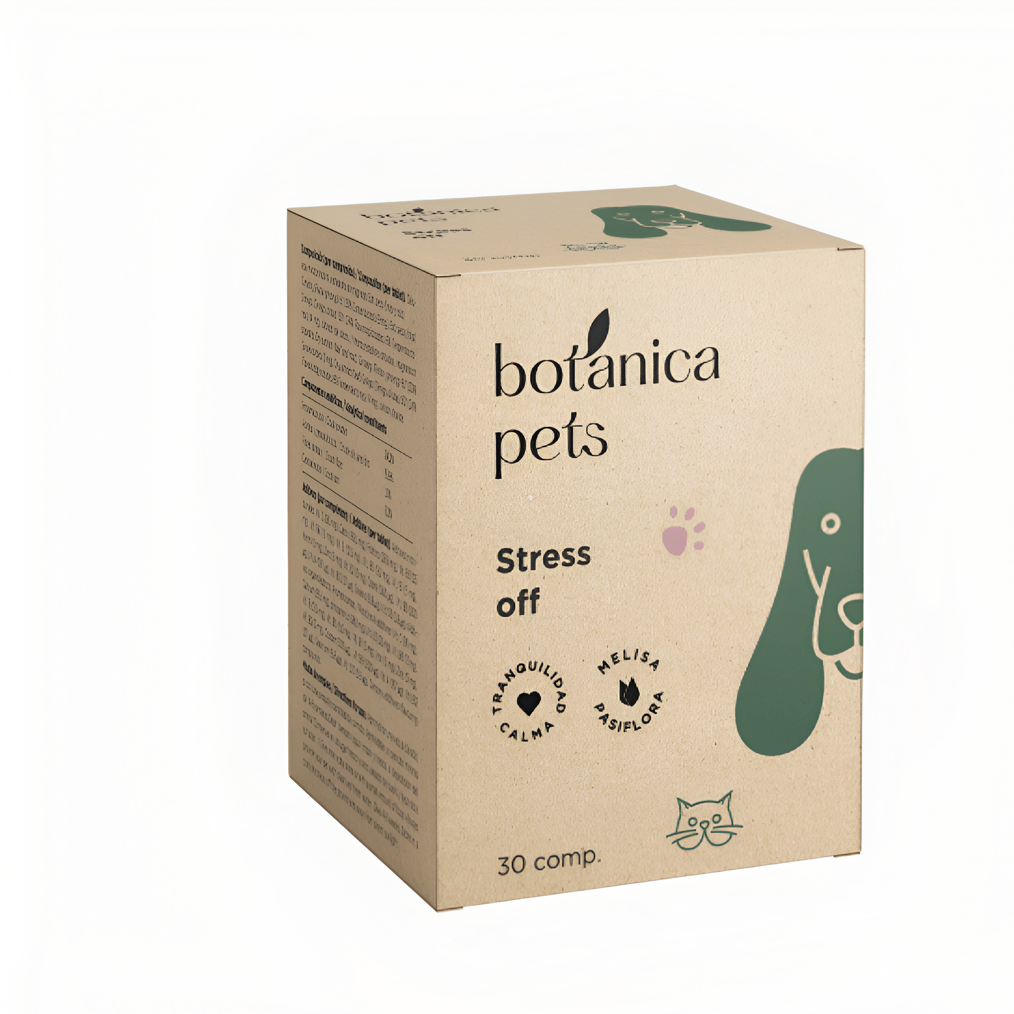 Stress Off Comprimidos Relajantes para Mascotas de Botanicapets ayuda a tu mascota a afrontar el estrés con este suplemento natural en comprimidos para reducir la ansiedad y mejorar el bienestar de perros y gatos.